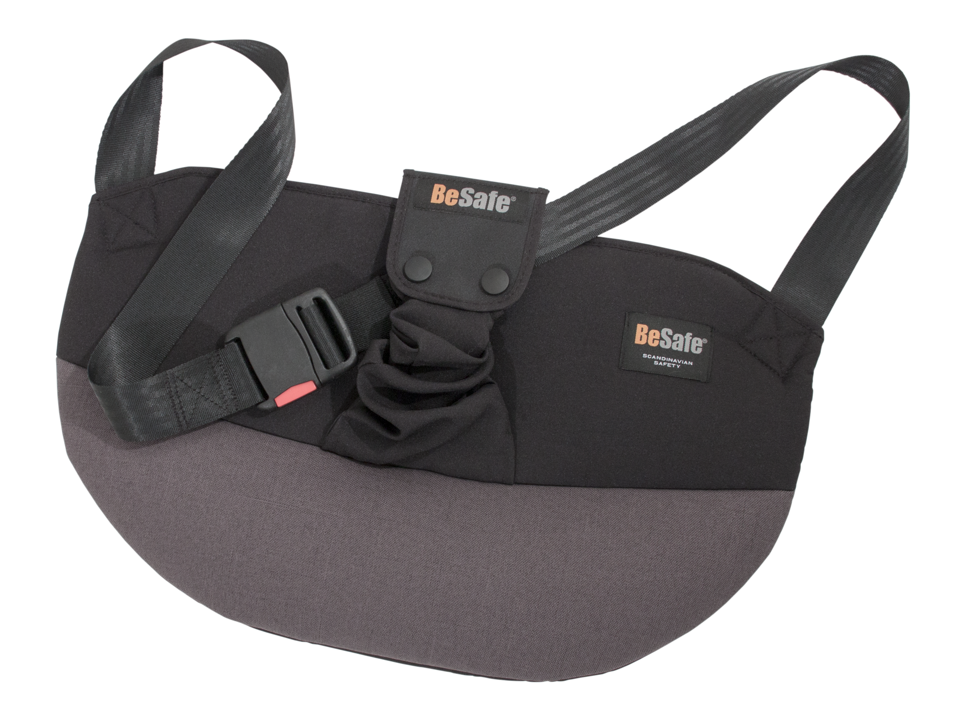 BeSafe Pregnant positions the vehicle belt below the pregnant woman’s tummy and away from the unborn baby. In the event of a collision, an adult weights 3 to 5 tons. The baby is positioned in the front of the tummy and is thus exposed to high loads. To protect the baby from injury from the vehicle belt, BeSafe Pregnant therefore positions the lap belt beneath the baby and over the hip bones.