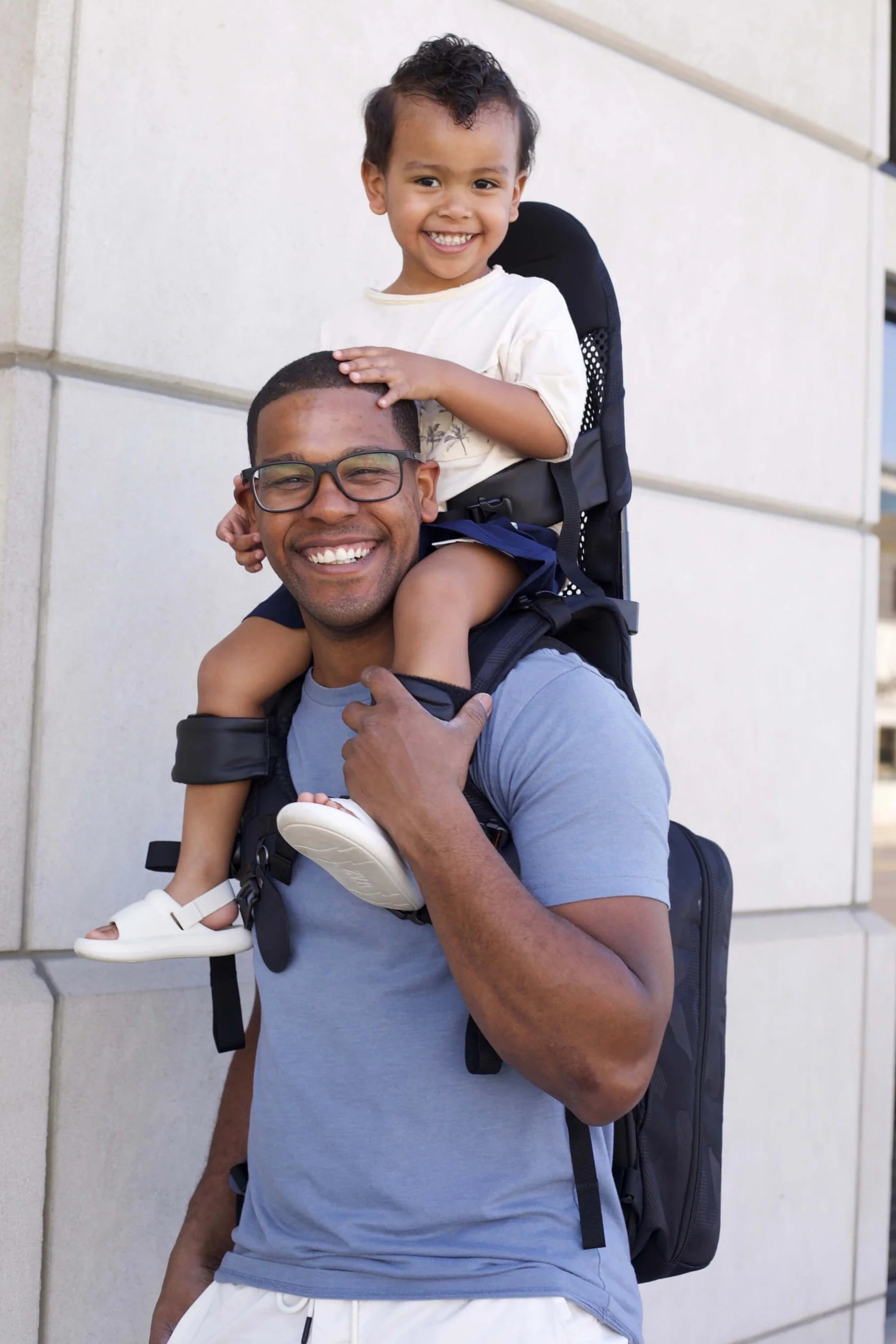 As parents, carrying your child on your shoulders is a useful and fun way to get about but wouldn't it be great to know you could be hands free while your child gets to enjoy being up high